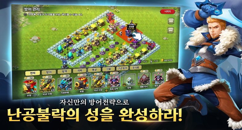 원하는 건물들을 조합하여 나만의 방어 진형 및 디자인 구축