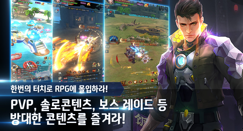 PVP, 솔로콘텐츠, 협력콘텐츠, 보스 레이드 등 방대한 콘텐츠를 한번에 터치로 즐겨라!